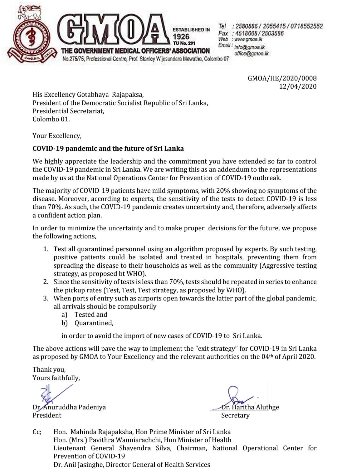 The post GMOA writes to President proposing 3 actions to pave the way for COVID19 exit strategy appeared first on NewsWire.