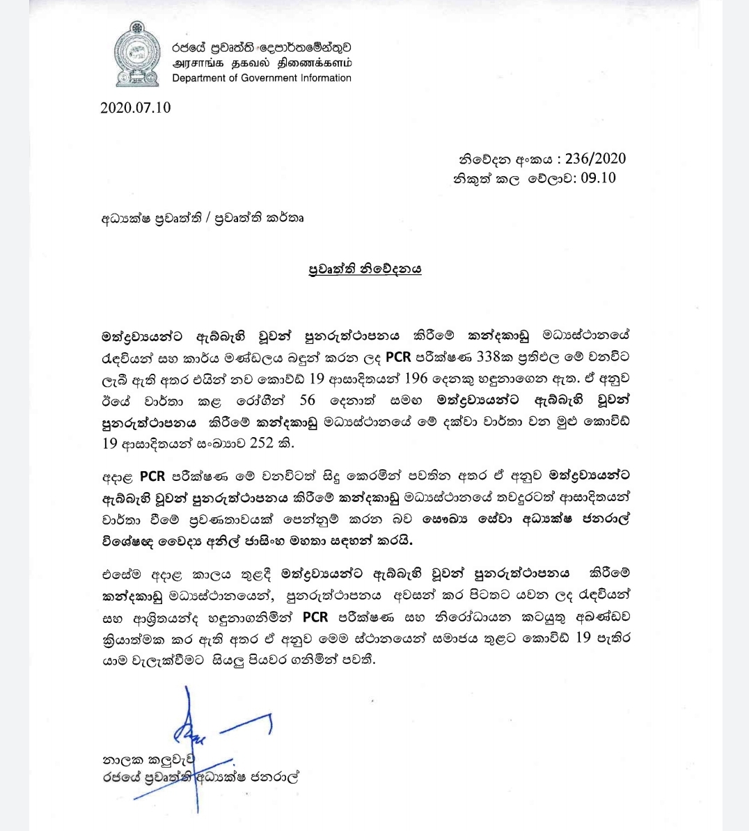 196 new COVID19 cases detected at the Kandakadu Drug Rehabilitation Centre after PCR results of 338 inmates and staff came in. Total detected at Kandakadu Drug Rehabilitation Centre now 252.