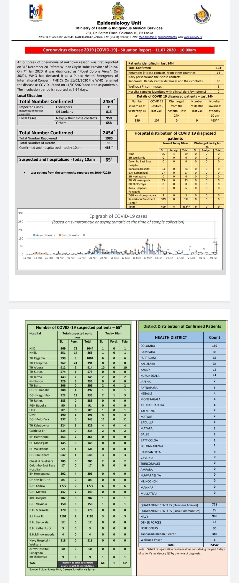 Health Ministry latest situation report on Covid19 in Sri Lanka