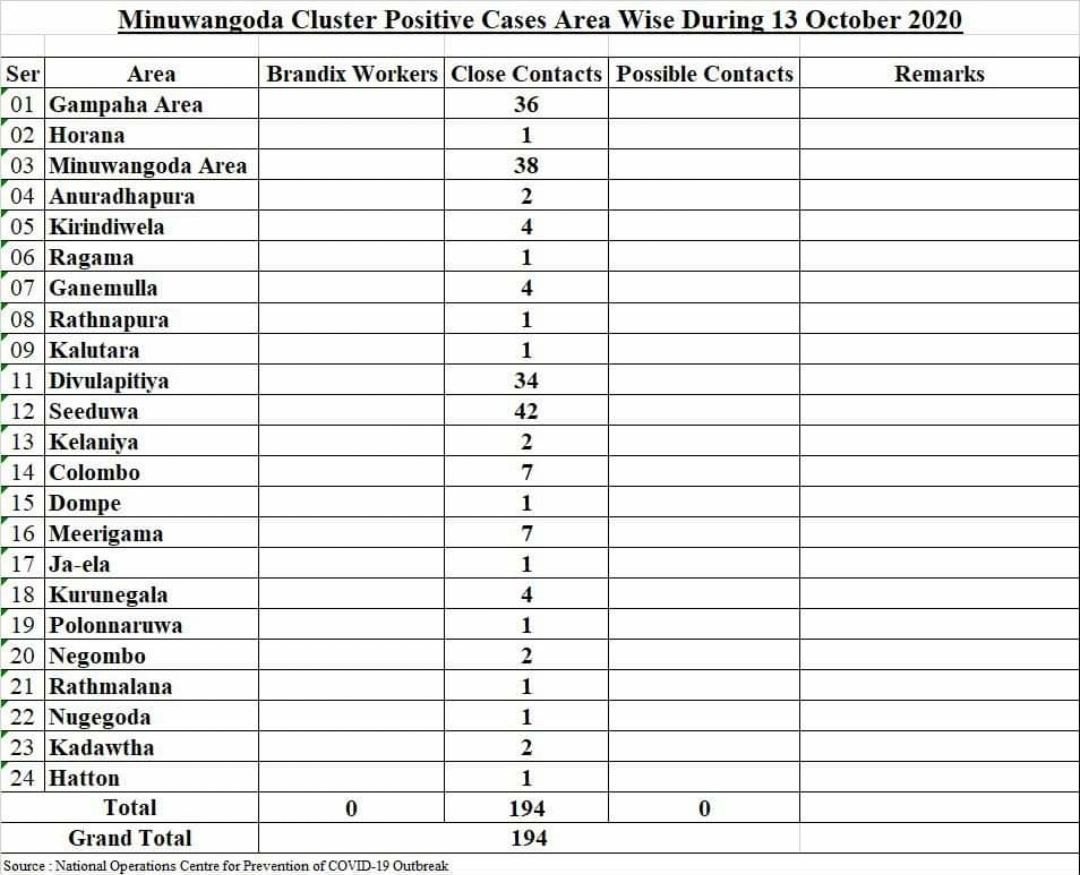 “Patients were detected from non- curfew areas such as Horana, Anuradhapura, Ragama, Ganemulla, Ratnapura, Kalutara, Seeduwa, Kelaniya, Colombo, Kurunegala, Pollonaruwa, Negombo, Ratmalana, Nugegoda, Kadawatha, and Hatton. These patients have been confirmed after conducting PCR tests and the address registered with the health authorities,” he said.