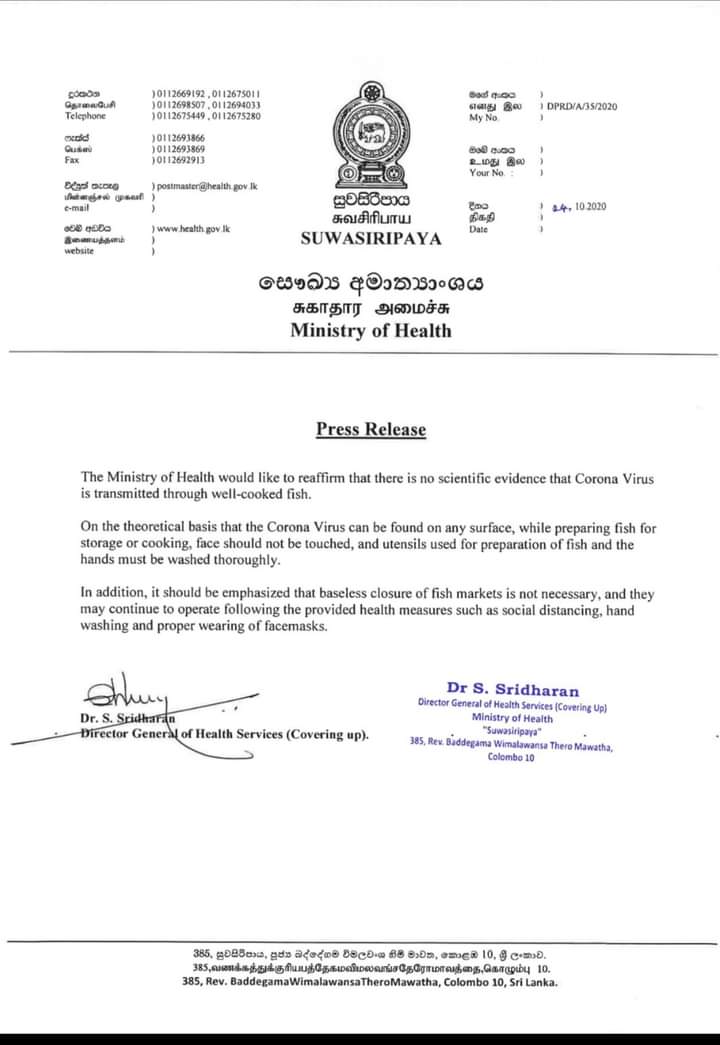 However, the Ministry issued health guidelines to be followed when handling raw fish as a precautionary measure. (NewsWire)