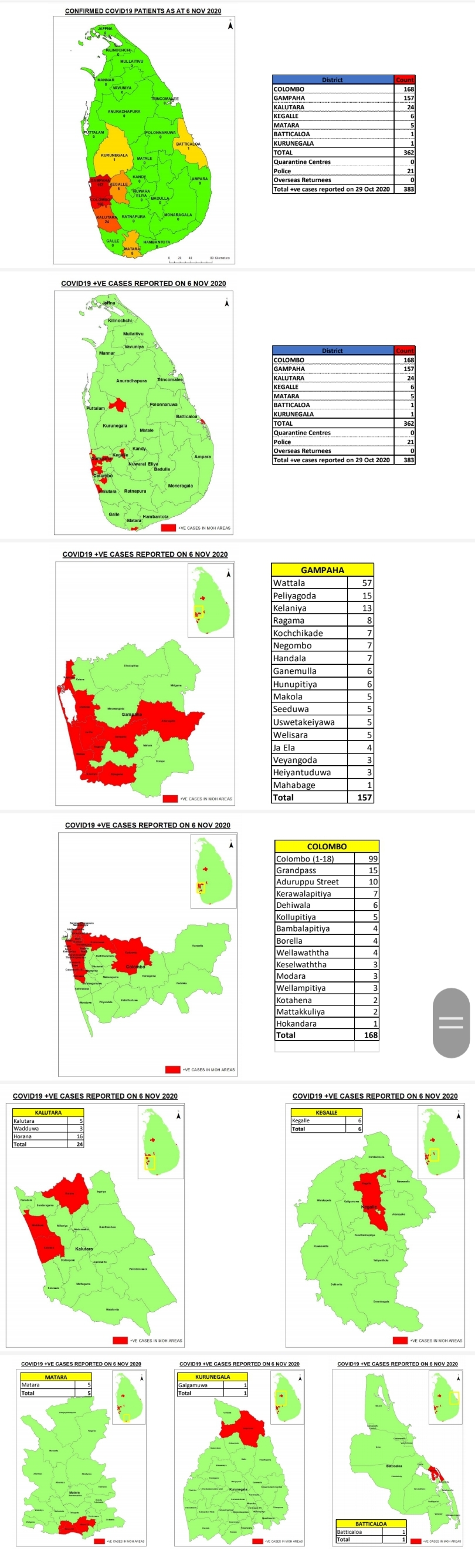 A total of 383 coronavirus patients were reported in Sri Lanka yesterday, with the majority being detected from the Colombo district.